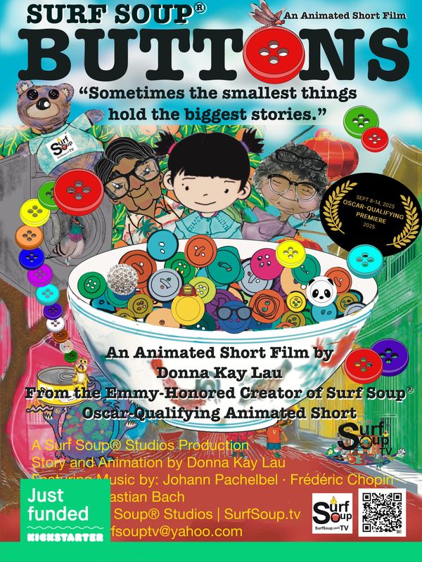 Join the adventure and help bring Surf Soup®: Buttons to life on the big screen! This Kickstarter campaign supports the hand-drawn, Oscar-qualifying animated short by Emmy-honored animator Donna Kay Lau. Your pledge helps fund screenings, music, rewards, and the creative magic behind every frame. Discover how you can be part of the journey, get exclusive behind-the-scenes access, and celebrate independent animation and Chinese American storytelling.