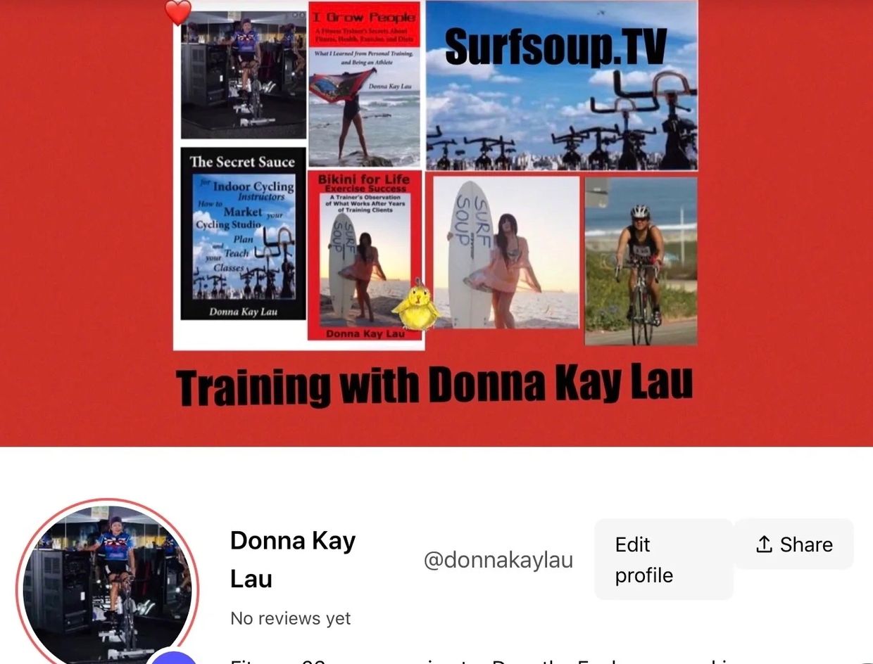 Fitness 23+ years,: “Surf Soup” kids to exercise,nutrition. author fitness books. LifetimeCertified 3 STAR SPINNING® Instructo, Surf,Triathlete, yoga, Ayurveda, Chinese medicine, & ’Success‘ coach
